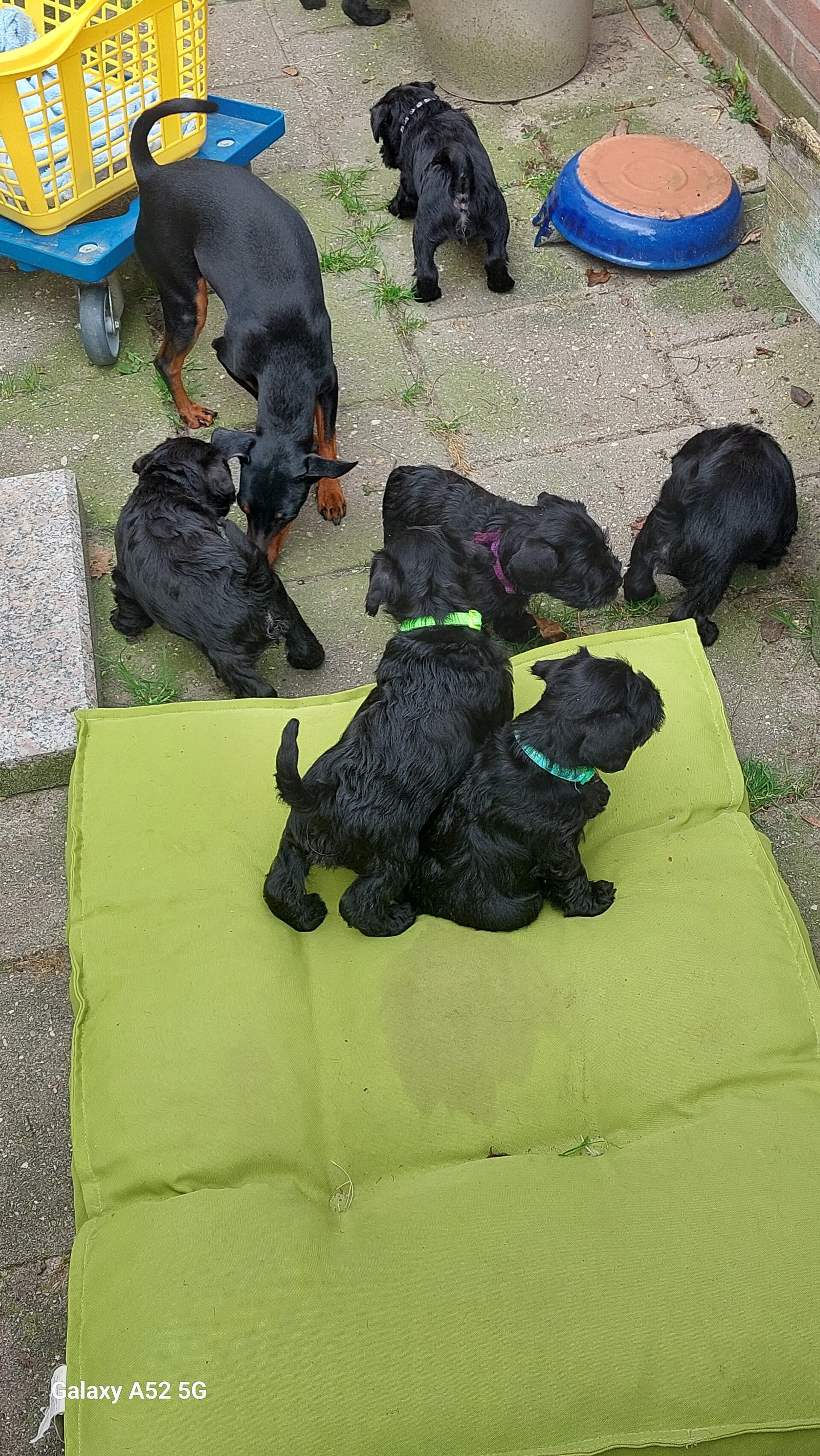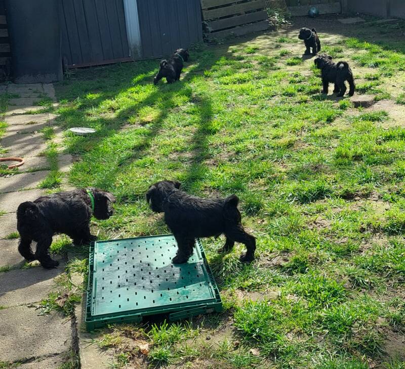Gestern wurden die Welpen in der Tierklinik untersucht und geimpft. Die Rüden haben ihre Hoden, bei allen sind die Bauchnabel prima. Die Ärztin hat den Wurf sehr gelobt und für gesund befunden.