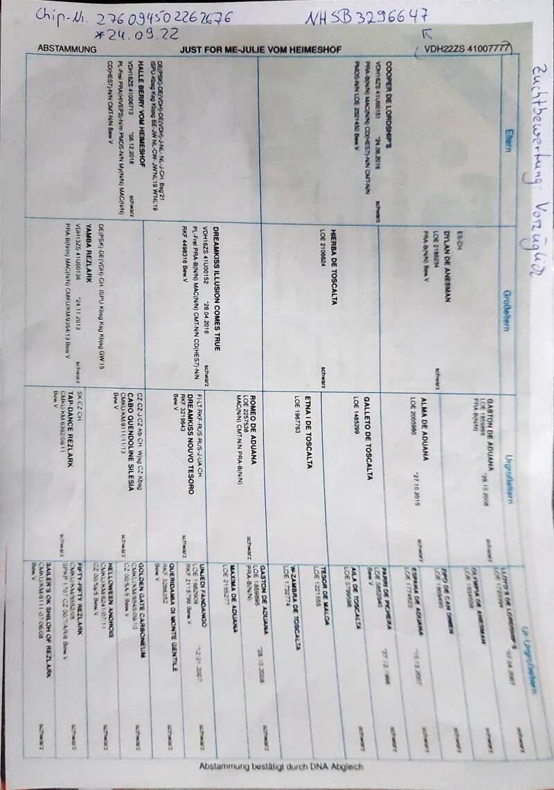 Pedigree's von Marco Polo Grasant x Just For Me - Julie vom Heimeshof